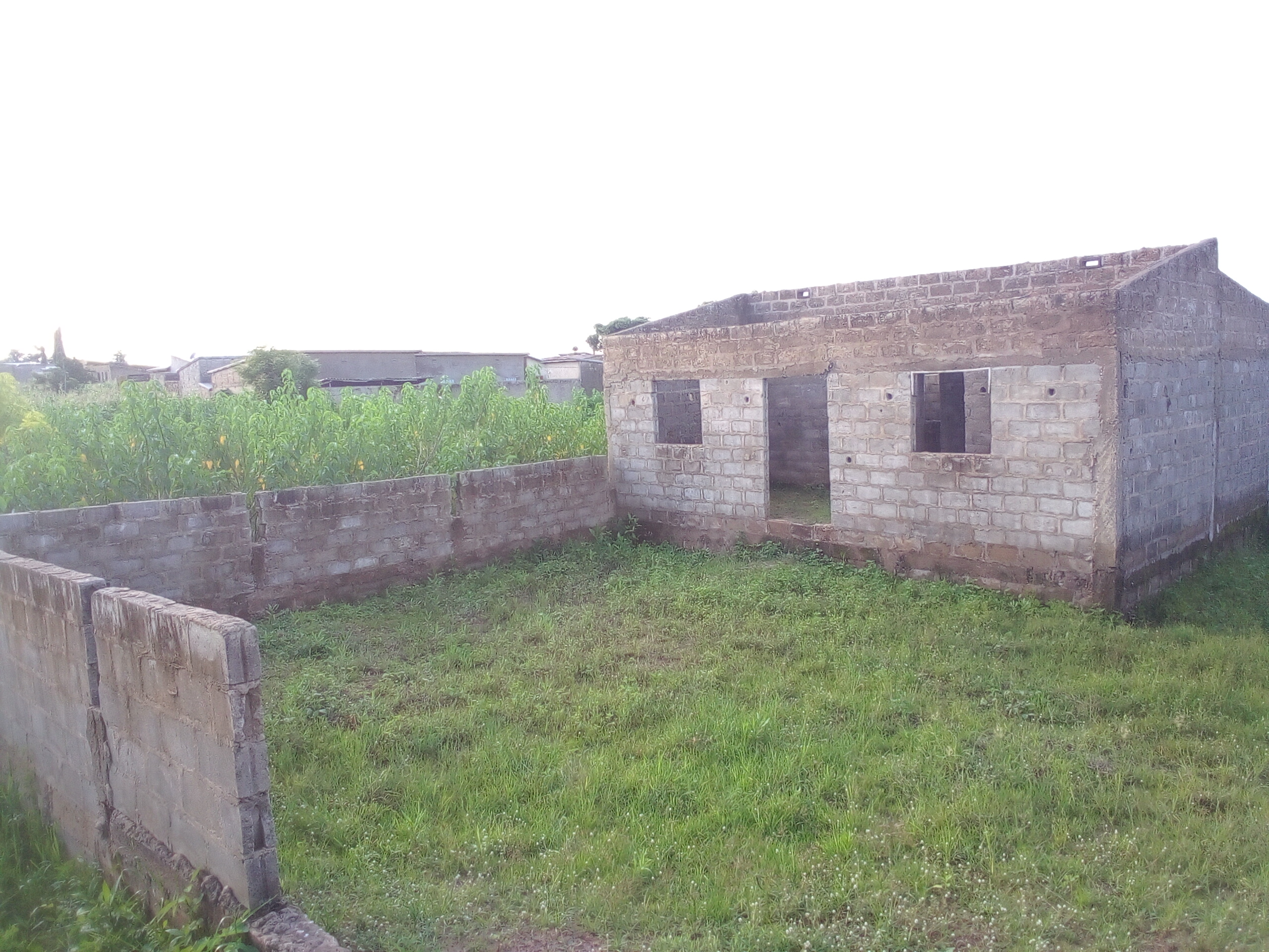 Une maison inachevée de 02chambres salon avec arrière cour à Albarika sur une parcelle de 350m², 1er de Parakou, dans une zone humide, 100m de poteau électrique, et 700m du commissariat Albarika.